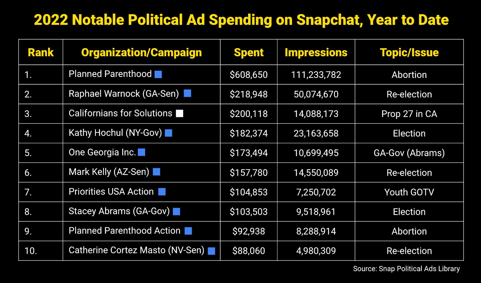 …and here are the top political ad spenders on Snapchat so far this year: