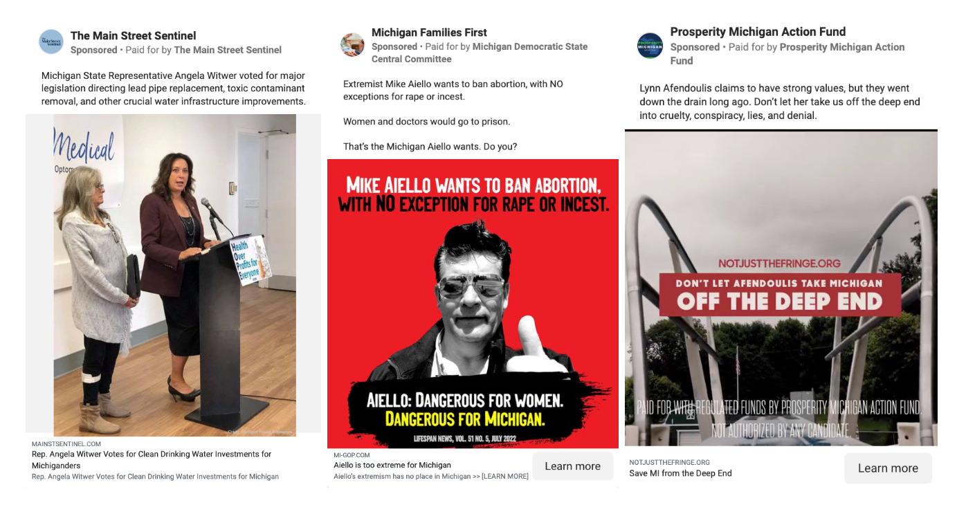 In addition to those two top advertisers, Prosperity Michigan & Prosperity Michigan Action Fund has spent over $200,000 on recent Facebook ads boosting state legislative Democrats in addition to supporting Whitmer, and Forward Majority Action Michigan has also launched new Facebook ad campaigns attacking Republican down-ballot candidates.