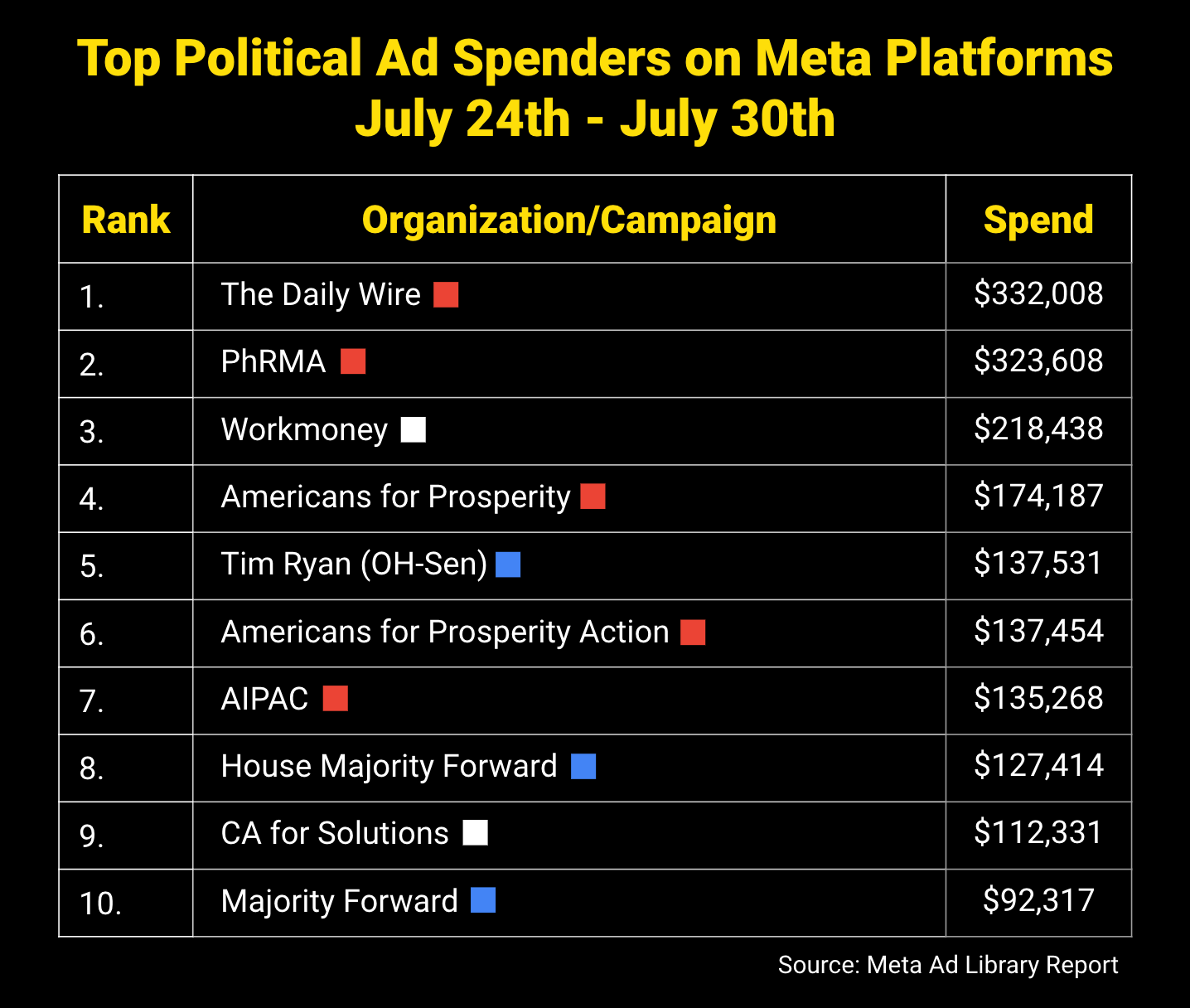 FWIW, here were the top-spending political advertisers on Facebook + Instagram last week: