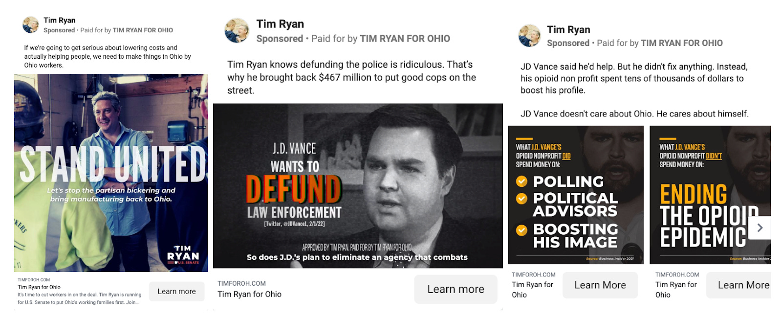 Democratic Rep. Tim Ryan, running for Senate in Ohio, was the top spending political candidate nationwide on Facebook and Instagram last week. The Ryan campaign has bucked its own party’s traditional messaging and flooded the zone with innovative digital ads meant to persuade Republican voters in the Buckeye state. He’s highlighted positive appearances on Fox News and touted his disagreements with Barack Obama, and it may be starting to pay off in some early polls. Many of his campaign’s recent Facebook ads even accuse his opponent of wanting to defund the police.