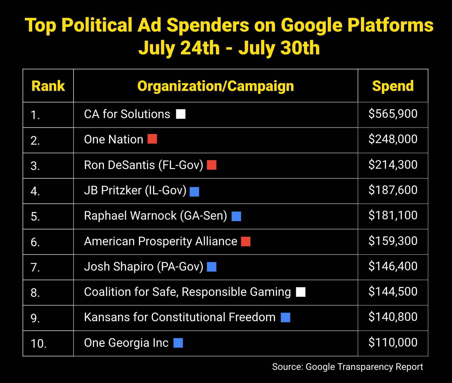 Meanwhile, here were the top political advertisers on Google platforms last week, including YouTube: