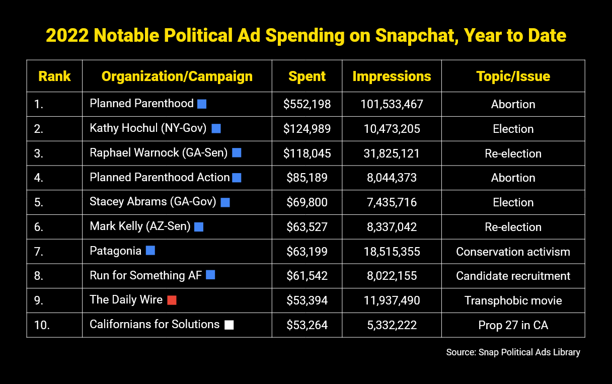 … and here are the top political ad spenders on Snapchat so far this year: