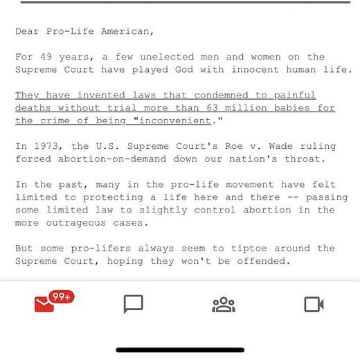 Most notably, by Wednesday afternoon we had seen dozens of politicians and political groups - mostly Democratic or progressive - already mention the SCOTUS ruling in Facebook advertising to their supporters. Here’s a mega-thread featuring some of the ads: