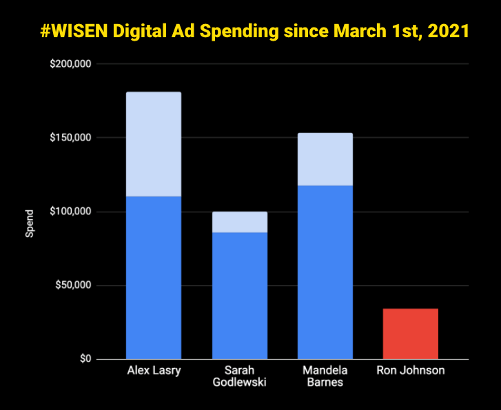 Wisconsin: There’s at least a three-way race to take on Sen. Ron Johnson, and each of the Democratic campaigns are already spending moderately online to get primary voters in their corner. Here’s the breakdown: