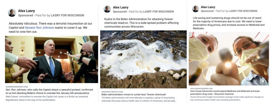 While all three campaigns are using Ron Johnson as a boogeyman to raise cash from Democrats nationwide, we thought it was interesting that Milwaukee Bucks executive Alex Lasry is paying to promote his commentary and policy views on news articles: