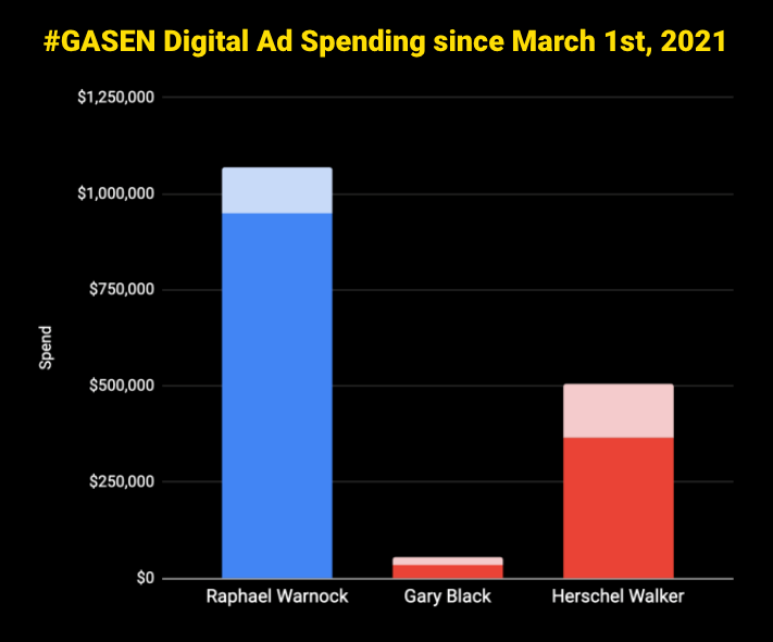 Georgia: Like Kelly in Arizona, Sen. Raphael Warnock is already up for re-election, and has been spending heavily on Facebook and Google fundraising ads all year. The dynamic of that race recently shifted, when Trump-backed Herschel Walker declared his candidacy and immediately began ramping up his campaign.