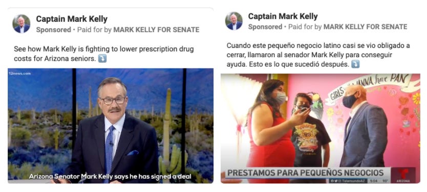 Kelly’s campaign hasn’t just spent all that money on fundraising ads, either. They’re boosting news and promoting videos on Facebook that underscore his policy wins for Arizonans - including lowering drug costs and providing relief to small businesses.
