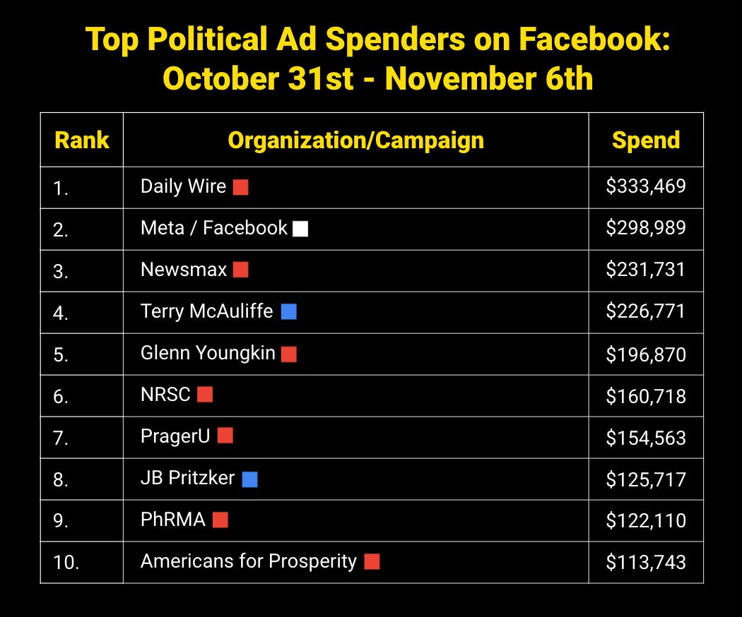 FWIW, here were the top political ad spenders on Facebook and Instagram last week: