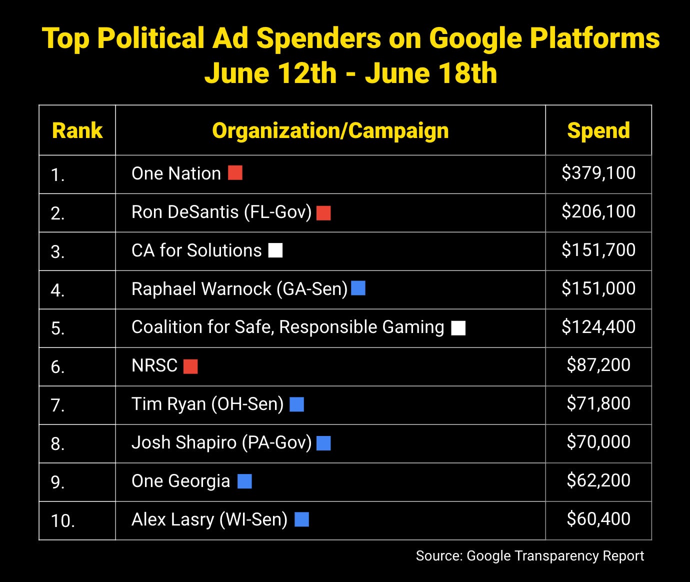 Meanwhile, here were the top political advertisers on Google platforms last week, including YouTube: