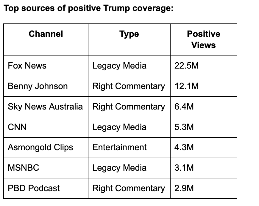 This is why Fox and similar right-wing creators supporting Trump are deeply important: they enable him to operate in a media ecosystem that is only hostile to him, not unilaterally negative.